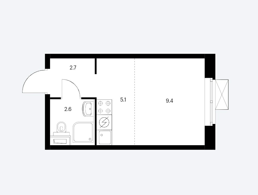 СТУДИЯ В ЧИСТОВОЙ ОТДЕЛКЕ -19,8 м2.